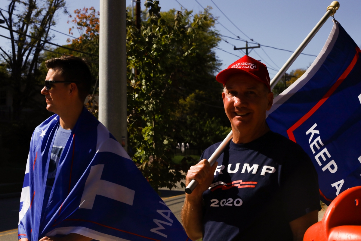 VIDEO: Demonstrators gather outside Belmont campus in support of presidential candidate Donald Trump #PresidentialDebate2020 pic.twitter.com/HQERWvrPjd